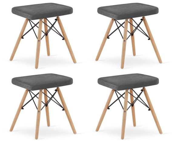 Taboret WERK - szary aksamit / nogi naturalne x 4